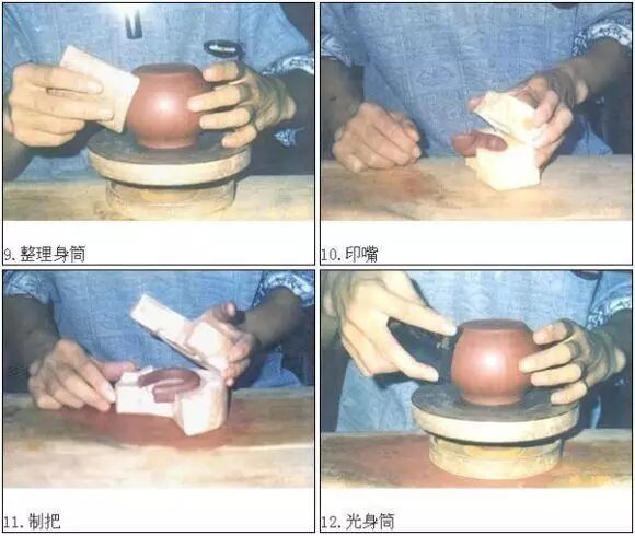 第一種:壺嘴、壺把、壺蓋等用手工制作,身筒用模具制作